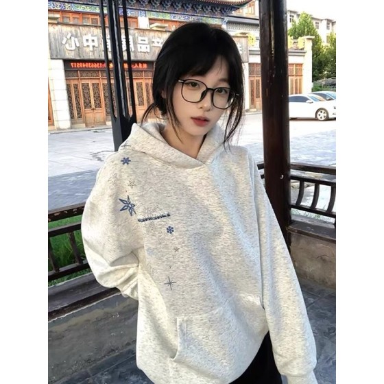 薄款/加绒【纯棉华棉】后包领压线 原版雪花绣花美式潮流卫衣女