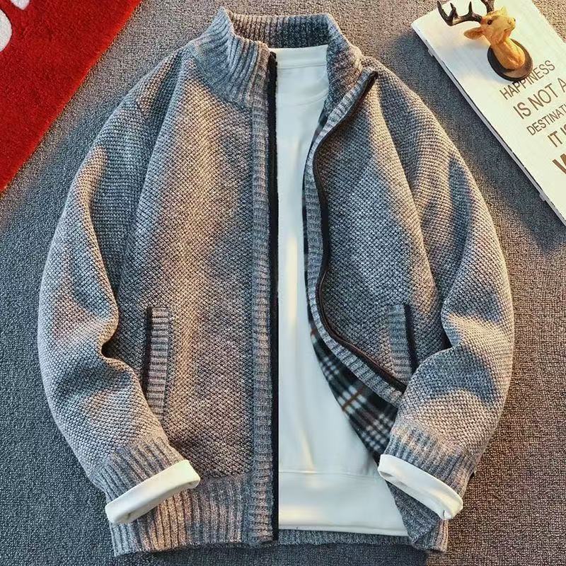 毛衣男拉链潮流休闲上衣外套秋季男装针织开衫男冬季加绒保暖立领