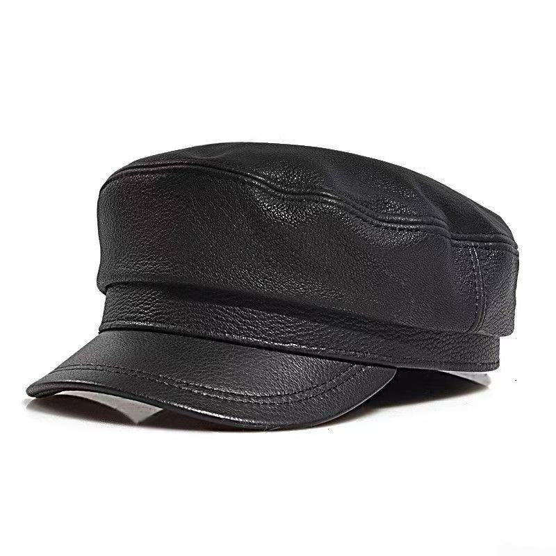 老式解放真皮平顶帽子皮帽子男士羊皮秋冬中老年复古休闲鸭舌帽